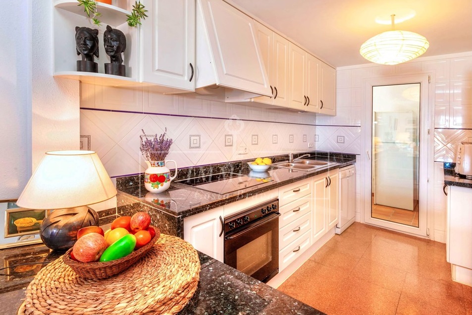 Consta de rebedor, ampli saló-menjador, cuina independent amb passa-plats, 3 habitacions dobles, bany complet amb banyera, bany amb dutxa, safareig i 2 terrasses amb una superfície total de 9,90 m². Disposa de traster de 5 m². Magnífiques vistes al mar i al Port.