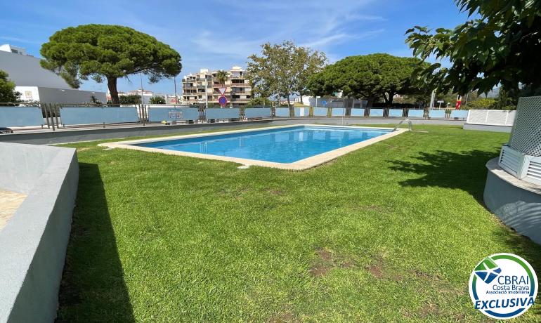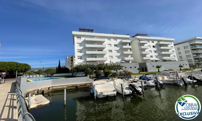The building was constructed in the year 2000. The property has a southwest orientation, providing sunshine almost all day long. It offers impressive views of the canal and the green areas. The parking space is private and enclosed, located on the ground floor. The 5 x 10 m swimming pool is surrounded by spacious areas with well-maintained natural lawn, benches and tables to enjoy a drink in the sun and admire the canal. The façade of the building has recently been repainted in a light and modern color. The property and its communal areas are impeccably maintained. The beach is 700 meters away, and supermarkets and public transport are just in front of the building.