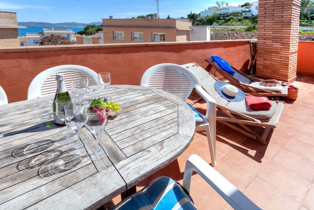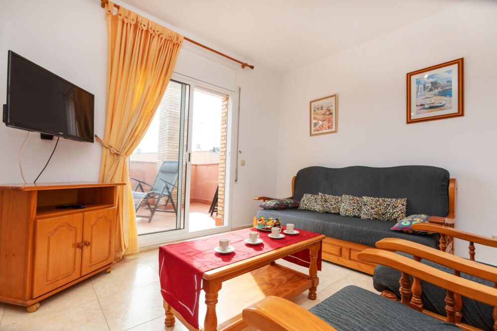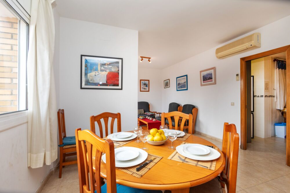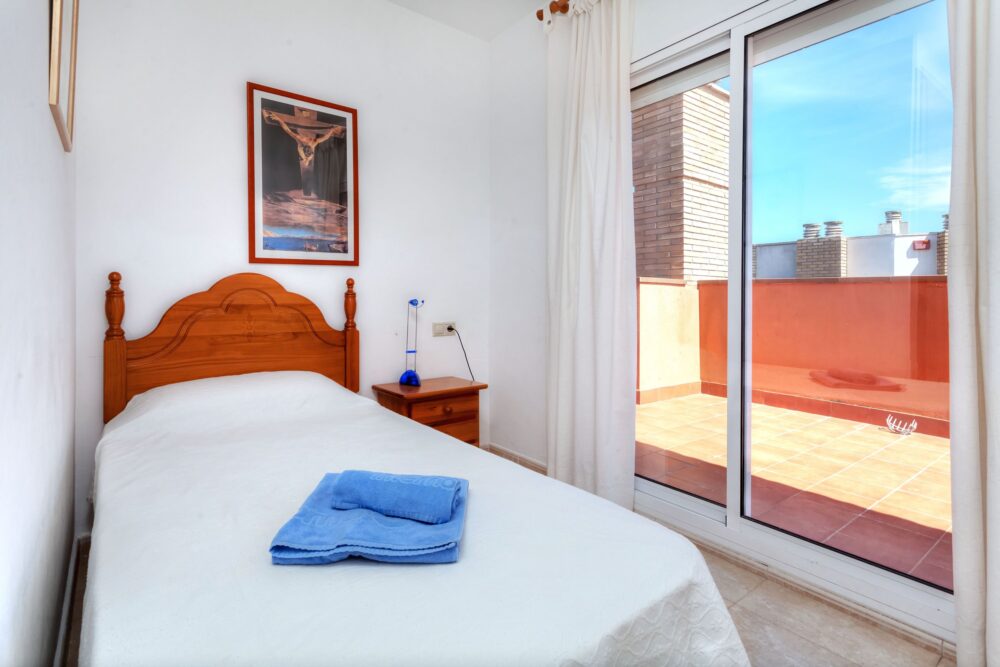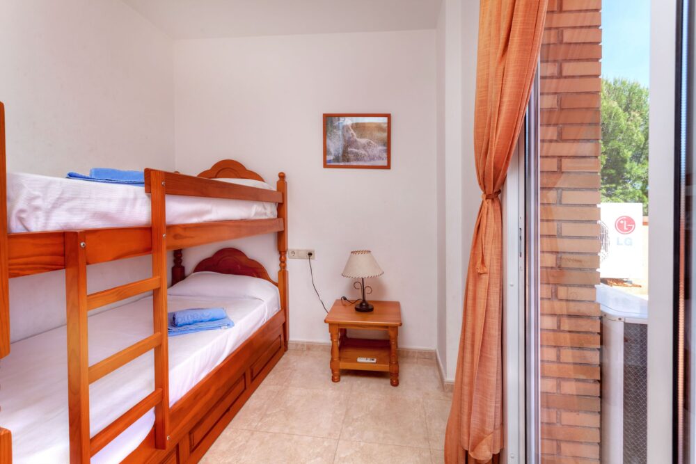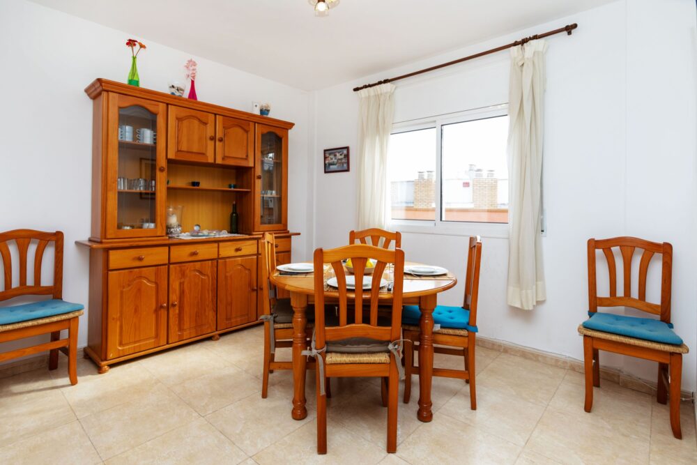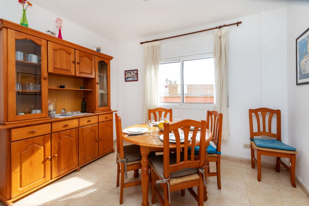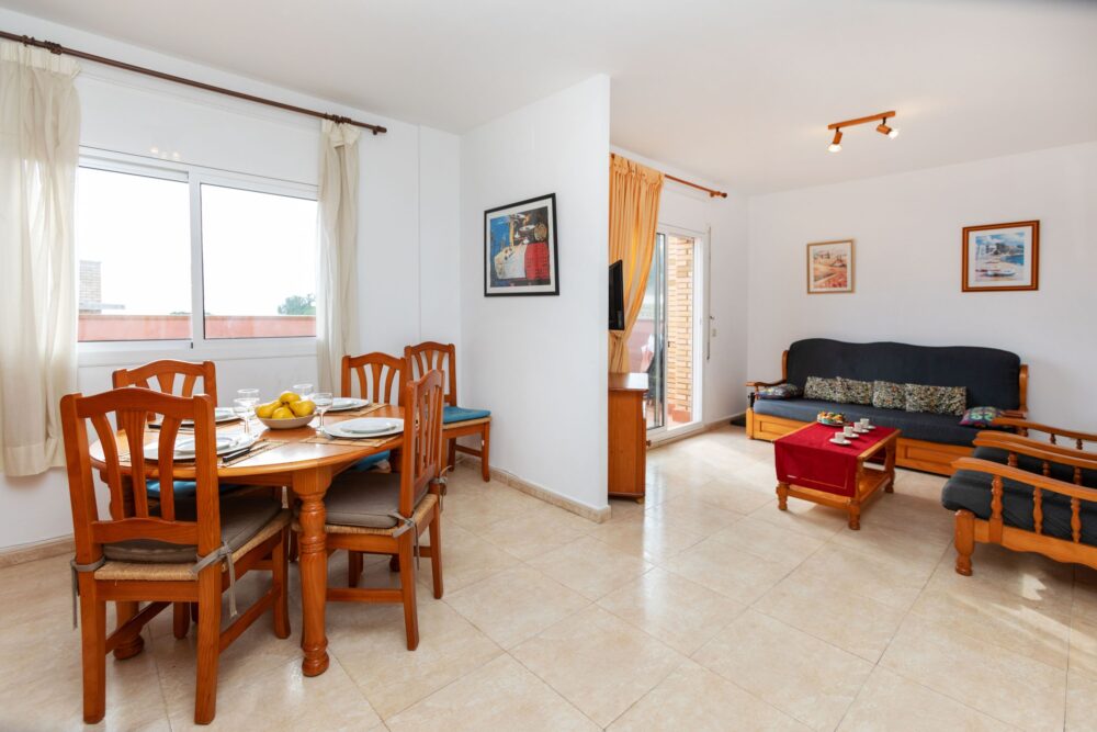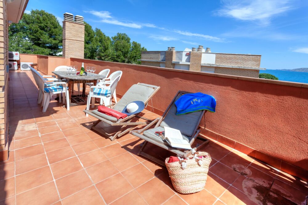 Ático de 4 estancias 90 m2 en el 3° piso, orientación sur. Con mobiliario confortable y moderno: salón-comedor 28 m2 con 1 sofá-cama, mesa de comedor, TV digital, pantalla plana, aire acondicionado y bomba de calor, caliente. Salida a la terraza, orientación sur. 1 dorm. con 1 cama (150 cm), ducha/bidet/WC, aire acondicionado y bomba de calor, caliente. 1 dorm. con 1 x 2 literas (90 cm), 1 cama-nido (1 pers.), aire acondicionado y bomba de calor, caliente. Salida a la terraza. 1 dorm. con 1 cama-nido (2 pers. 2 x 90 cm), aire acondicionado y bomba de calor, caliente. Salida a la terraza. Cocina (4 fogones, horno, lavavajillas, microondas, congelador). Ducha/WC. Aire caliente. Terraza grande 35 m2. Muebles de terraza, tumbonas (2). Vista al mar. El alojamiento dispone de: lavadora, secador de pelo. Plaza de aparcamiento n. 7 (1 coche). A tener en cuenta: TV solamente ES.