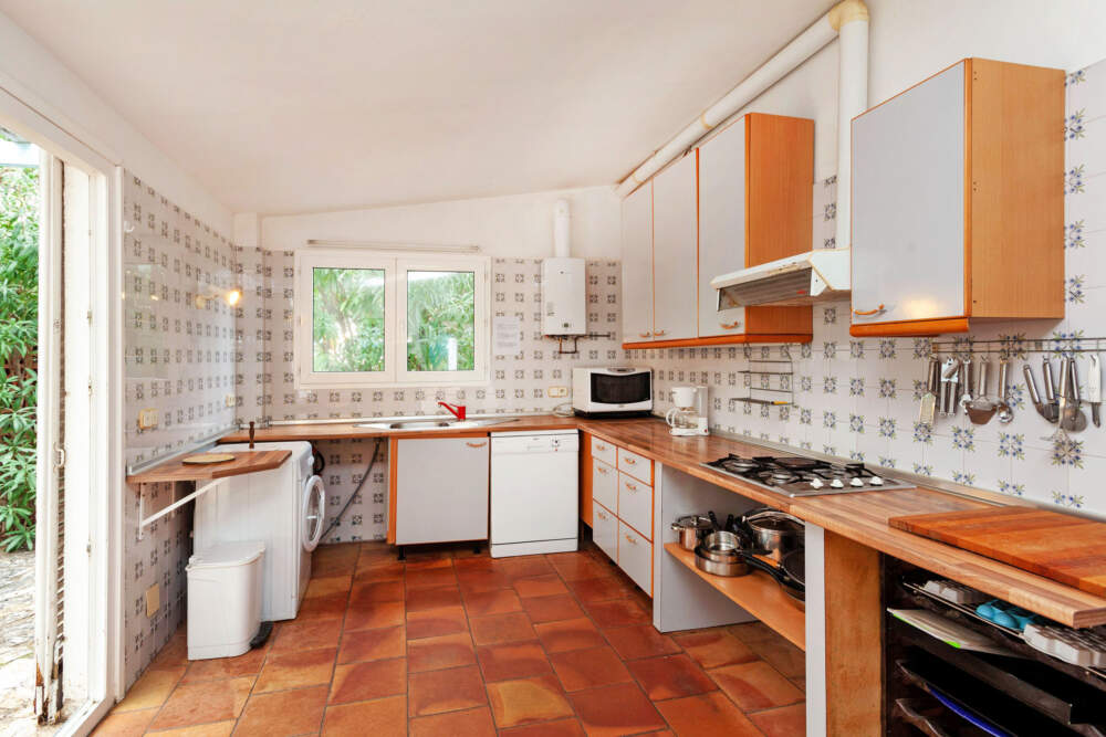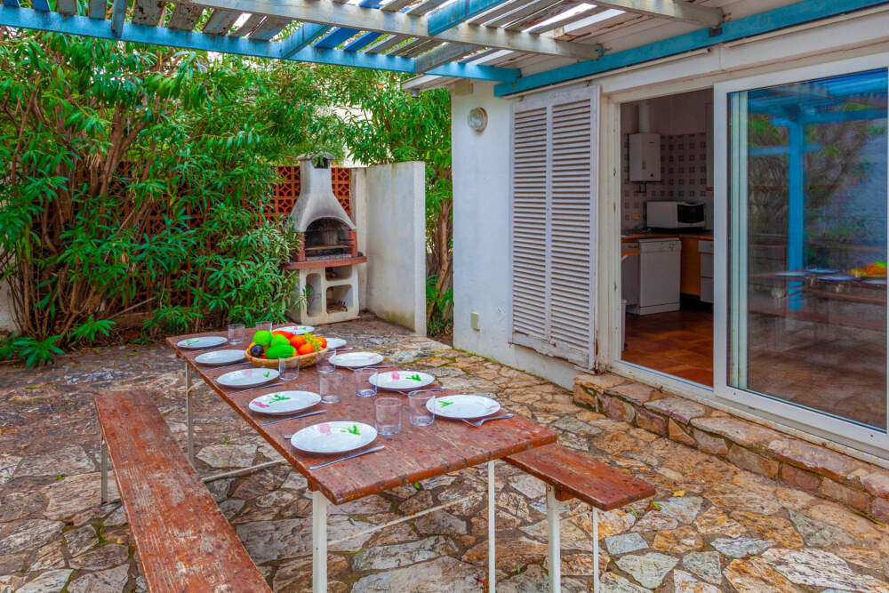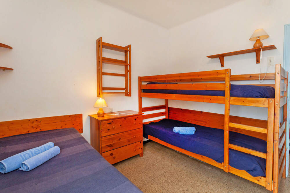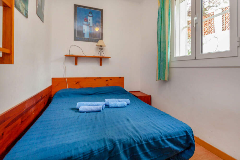 Casa 5 estancias 110 m². Con mobiliario funcional: salón-comedor 30 m² con TV satélite, TV digital y canales internacionales. Salida a la terraza. 1 dorm. con 1 cama de matrimonio (140 cm). 1 dorm. con 1 cama (90 cm), 1 x 2 literas. 1 dorm. con 1 cama de matrimonio (160 cm). Cocina (lavavajillas, microondas/grill) con mesa de comedor. Ducha/WC. En planta inferior: (escalera exterior) 1 dorm. 18 m² con 1 cama (90 cm), 1 cama de matrimonio (160 cm). Ducha/WC. Terraza 20 m², terraza 90 m², orientación sur. Muebles de terraza, barbacoa, tumbonas (2). El alojamiento dispone de: lavadora. Plaza de aparcamiento junto a la casa. Permitido máximo 2 mascotas / perros. En la planta baja hay un acceso por el exterior con un desnivel de 180 – 200 cm.