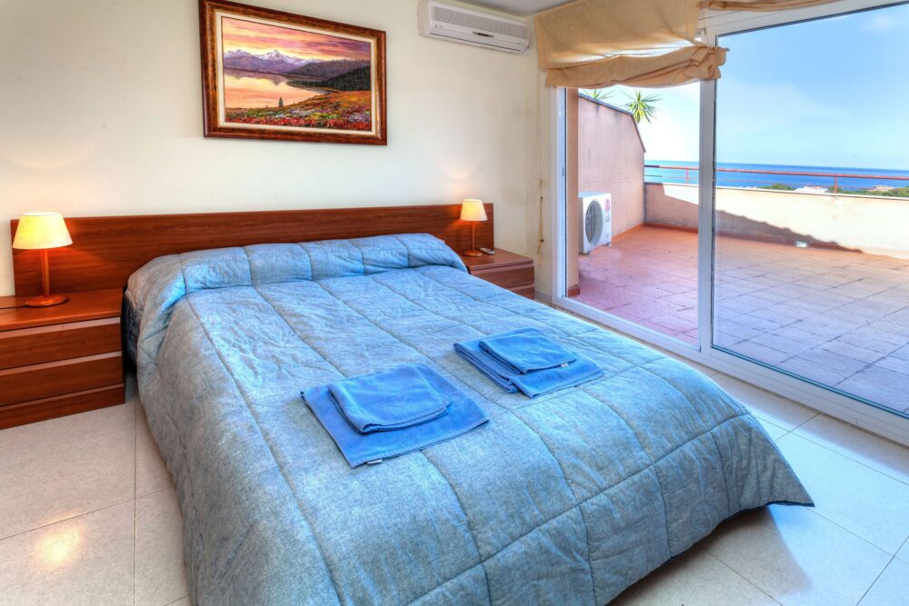 Ático de 4 estancias 62 m2 en el 2° piso. Luminoso, con mobiliario funcional: salón-comedor con 1 sofá-cama (120 cm), TV satélite, TV digital, pantalla plana, aire acondicionado y bomba de calor, caliente. Salida a la terraza. 1 dorm. con 1 cama de matrimonio (1 x 135 cm), TV digital, pantalla plana, aire acondicionado y bomba de calor, caliente. Salida a la terraza. 1 dorm. con 2 camas (90 cm), ventilador. 1 dorm. con 1 cama (100 cm). Cocina abierta (horno, lavavajillas, 4 placas de vitrocerámica, microondas, congelador, cafetera eléctrica). Baño/bidet/WC. Terraza grande 46 m2. Muebles de terraza. Vista muy bonita al mar, a las montañas y al paisaje. El alojamiento dispone de: lavadora. Internet (Wifi, gratis). Plaza de aparcamiento n. 1 y 18. A tener en cuenta: adecuado para familias. 1 mascota pequeña / perro. TV solamente ES, FR, DE. Wifi limitado a 2 dispositivos.