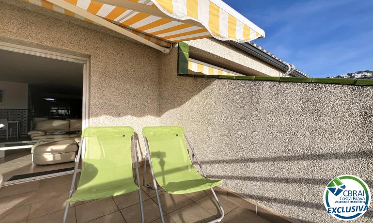 Hay oportunidades que marcan una vida. En pleno centro de Roses, este dúplex de 97 m² ofrece una distribución perfecta: dormitorios en la planta inferior con vistas al mar desde el principal, y arriba un luminoso salón abierto a una terraza de 18 m² orientada al suroeste.