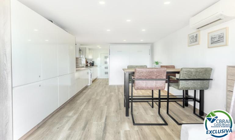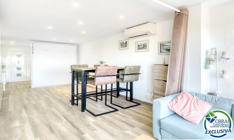 Estudio reformado con vistas al mar y plaza de aparcamiento en Roses