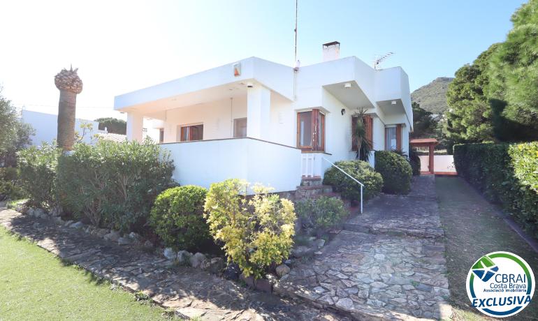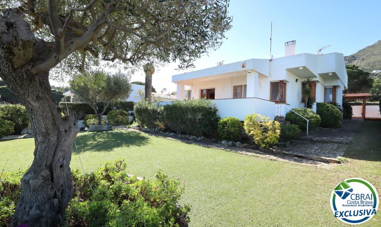 En el corazón de la exclusiva urbanización Cap de Vol, en el encantador municipio de El Port de la Selva, se encuentra esta acogedora vivienda en planta baja de 141 m² construidos sobre una amplia parcela de 671 m², un auténtico refugio frente al Mediterráneo.