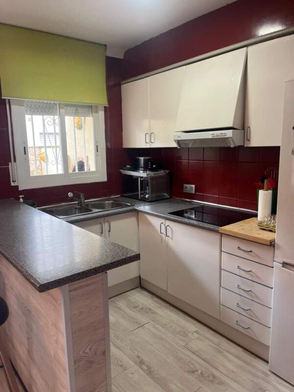La casa muy luminosa con orientación sur esta compuesta de salon comedor – cocina, dos habitaciones y dos cuartos de baño.