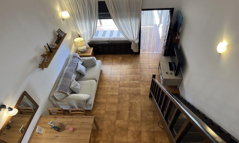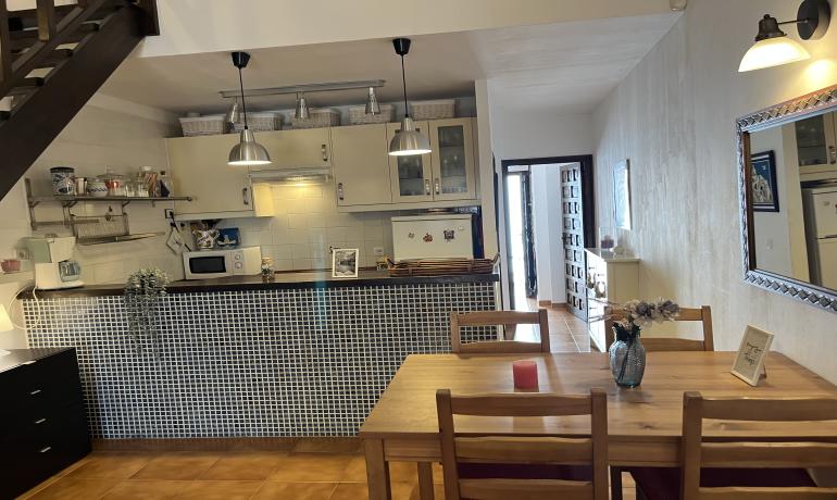 Esta práctica vivienda se distribuye en dos plantas, ofreciendo comodidad y funcionalidad. En la planta baja, encontrarás el salón-comedor con cocina americana con acceso directo al exterior donde hay una terraza delantera de 26m2. También dispone de un baño completo con bañera y una luminosa habitación doble con armario empotrado, desde la cual podrás acceder directamente a la terraza trasera de 10m2, perfecta para tus momentos de relax.