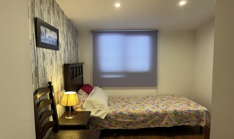Subiendo a la primera planta, te espera un concepto abierto y versátil con una cama doble y una cama individual, ideal para invitados o como espacio familiar adicional. Esta planta se complementa con un baño sencillo, añadiendo practicidad.